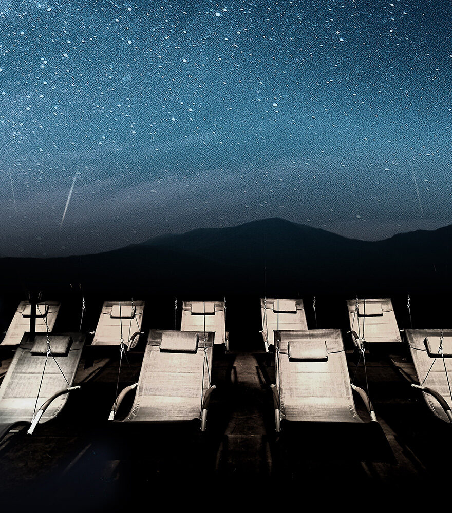 Placé sur un plateau habité par la chaleur, la pluie, le vent, les odeurs de plaine, le soleil éclatant, le spectateur est invité à laisser les éléments le traverser, à devenir arbre, rocher et montagne. Les spectateurs sont effectivement plongés au cœur d’une véritable expérience ! Suspendus dans une sorte de transat flottant, vous pourrez physiquement éprouver la pluie, la chaleur de la lumière sur votre peau, le souffle d’un vent chaud ou froid, respirer une odeur puissante de terre… Immergés dans un dispositif sonore spatialisé, vous aurez la sensation d’être en mouvement bien que parfaitement immobile. Un voyage tout à fait inédit !