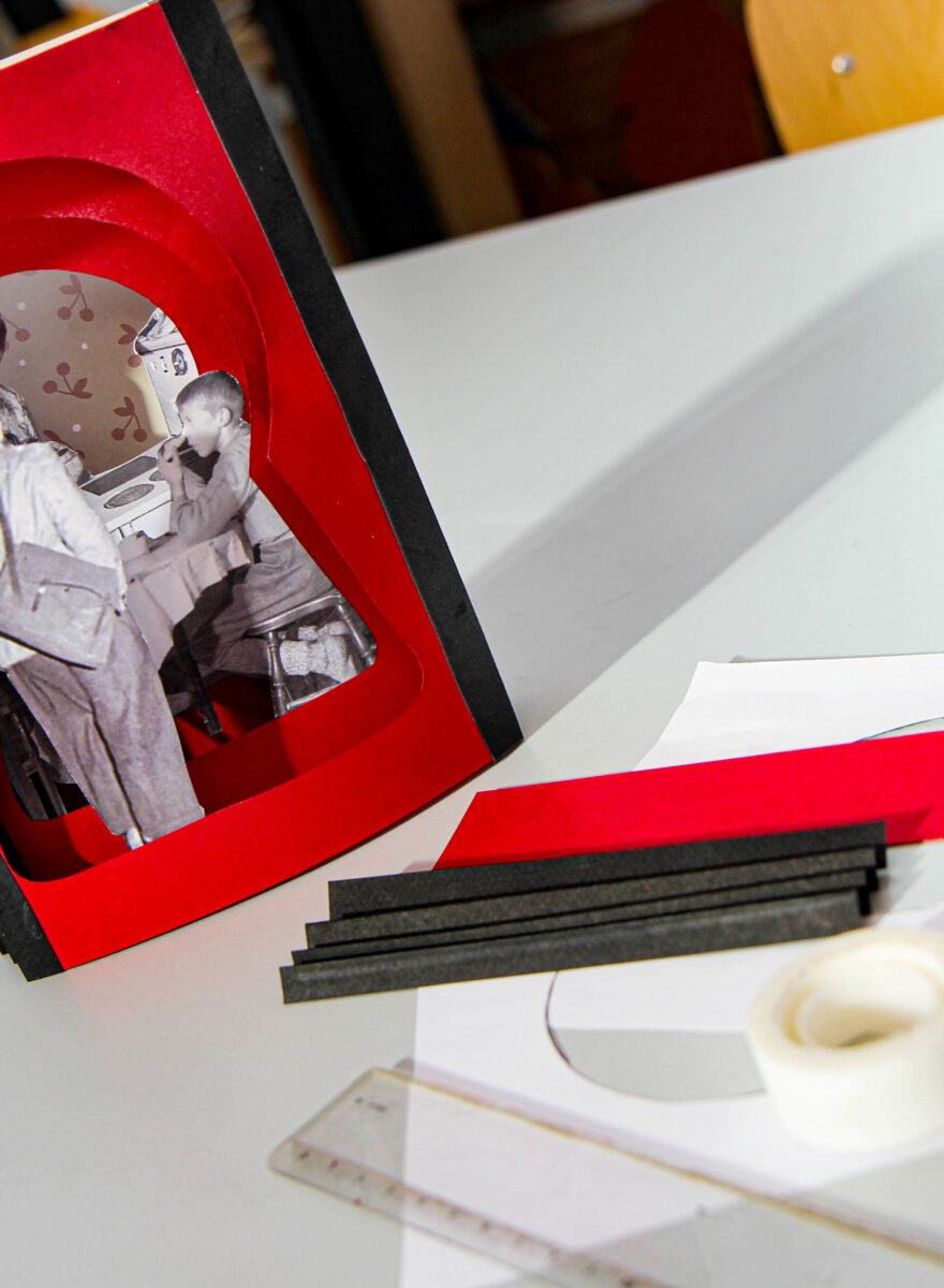 À travers une petite balade dans l’exposition et dans la cité-jardin De Clercq, découvre le quotidien d’une femme de mineur. Allons même jusqu’à regarder par le trou de la serrure pour voir ce qui se passe dans une maison, grâce à la création d’un livre-tunnel.