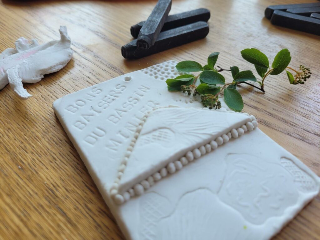 C’est les vacances ! Et si vous fabriquiez une carte postale du Bassin minier ? En t’inspirant des empreintes géantes de l’artiste Catherine Zgorecki, ou des motifs floraux de Safia Hijos et Claude Como, réalise une carte postale en argile autodurcissante à offrir ou à accrocher à la maison !